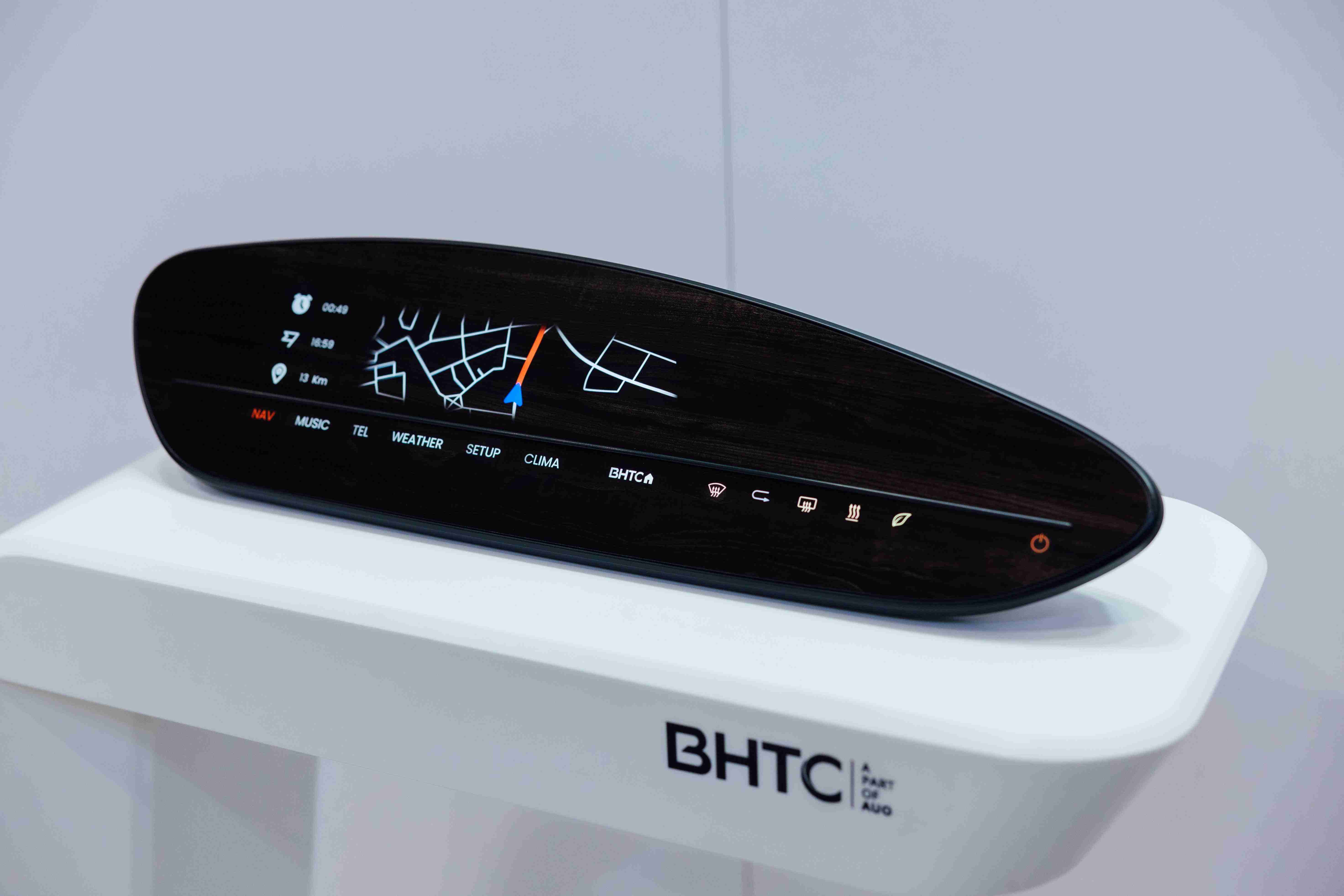 BHTC的木纹车用显示器(Display Behind Wood)将无缝木质表面与显示器结合后,,可以融入车内设计中,,,,提供驾驶优质的视觉效果,,,加上其无边框的设计和亮度调控,,,创造更优质的车内体验。。。。