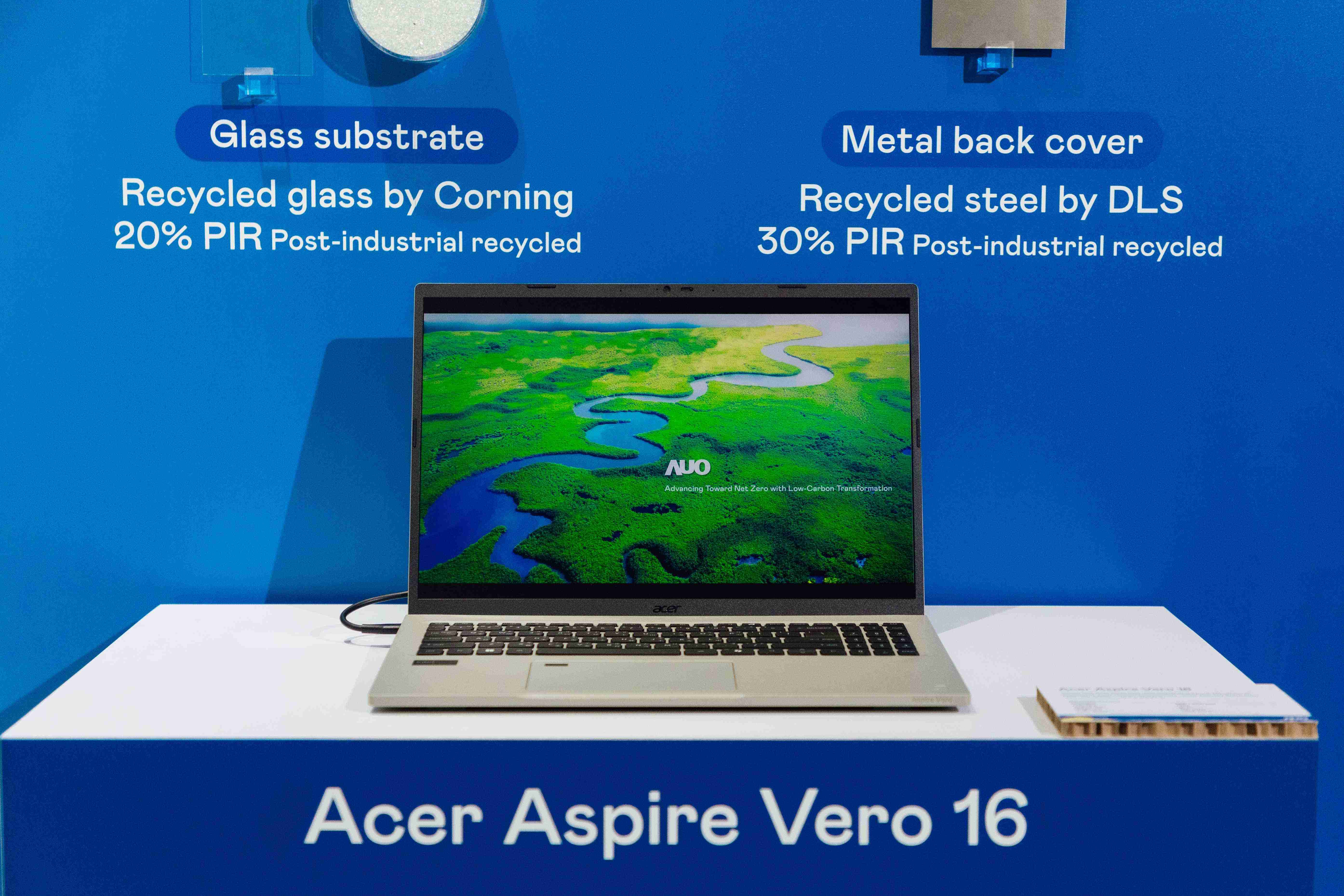 全球首款笔记型电脑采用PA直营100%绿电制造的面板,,,,结合PCR外亦使用工业后回收材料(PIR),,,例如回收玻璃和金属,,,减少对环境的影响。。