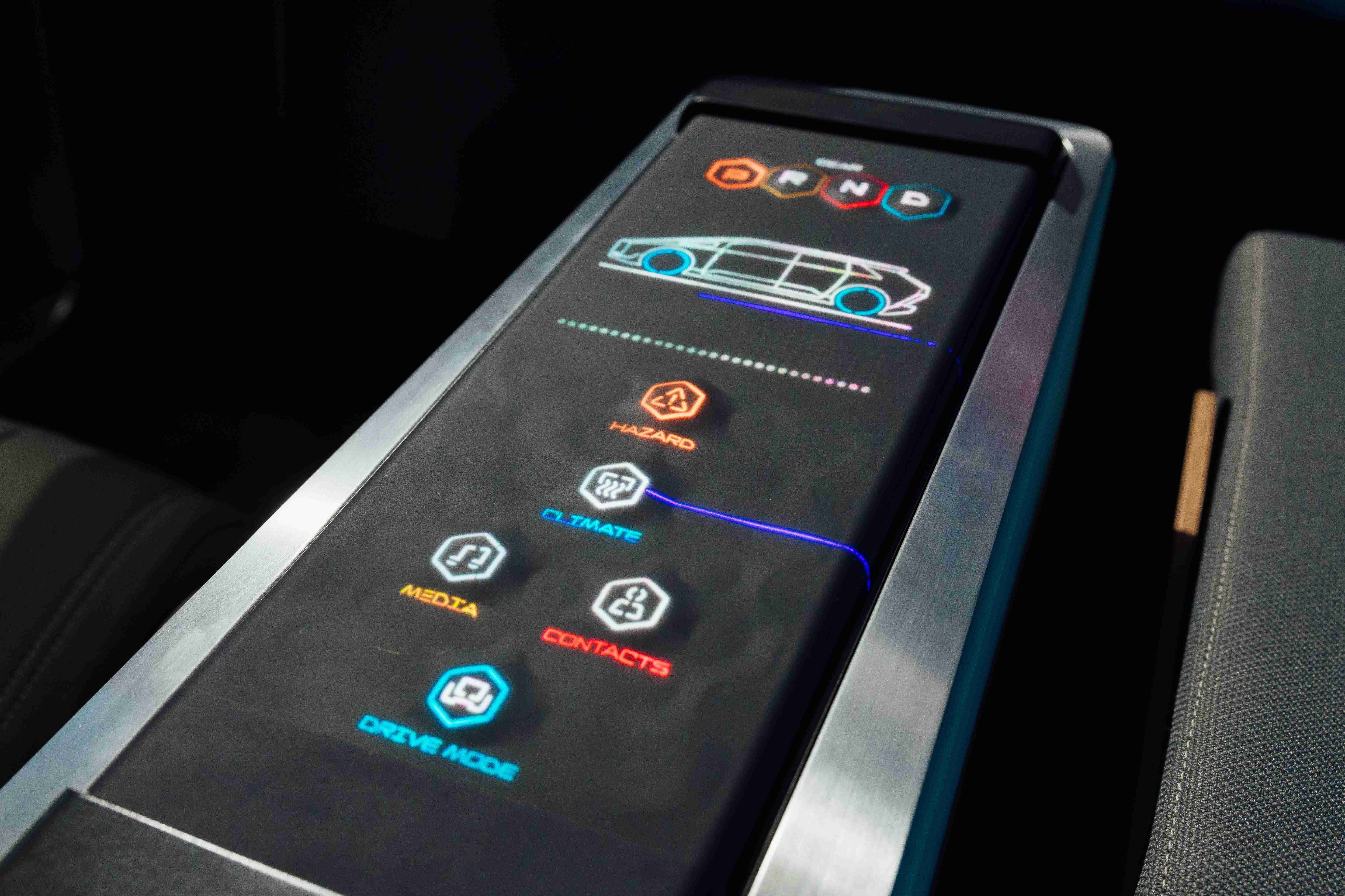 多变形态中控显示(Morphing Center Control)拥有动态变化的表面,,,,平时常态显示车辆功能,,,进一步操作时,,,,则会隆起成为3D 按钮,,,,并在触控时以震动回馈,,,,以精细的操作开创人机互动新境界。。。。