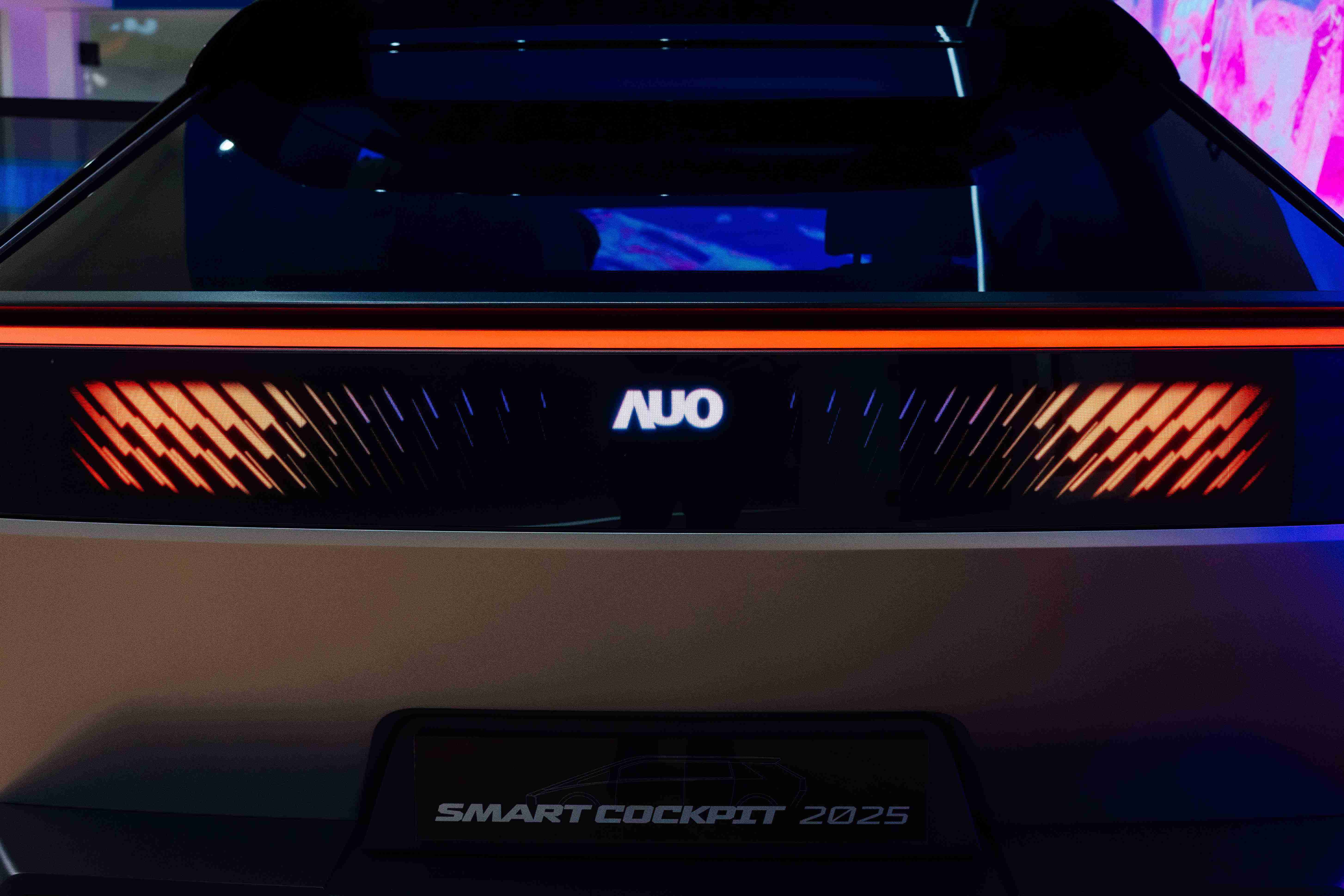 PA直营Smart Cockpit 2025 在车头及车尾搭载合作伙伴Ennostar开发的互动式矩阵显示器(Interactive Matrix Display),,其突破传设计框架,,,利用优化的光源整合技术,,,,提供更高亮度与对比度的显示效果,,,,营造驾车者个性化风格并传递讯息。。。。